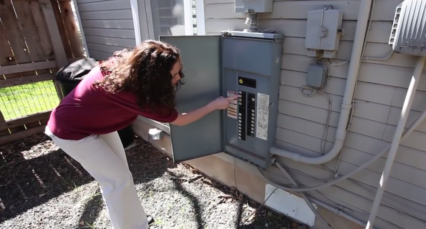 Now, let’s briefly review how electricity gets to your house. Most residential and light commercial homes in north America have a single-phase 3-wire 120V/240V service. It consists of two inverted relative to each other lines and a grounded neutral. Connecting an electric load between any line and the neutral yields 120 volts AC. Connecting between both lines yields 240 volts AC (see the diagram). The two 120V buses are derived from a step-down distribution transformer, which is usually mounted on a pole. Its secondary winding has a grounded center tap connected to neutral wire. The two end terminals are electrically "hot" with respect to the neutral. Note that both lines are derived from the same utility phase. That’s why such configuration is often called "split phase". The three conductors go from the pole to your electric meter. From the meter they run to the panel containing the main service disconnect. From there the lines go to magnetic circuit breakers that protect individual branches or circuits.